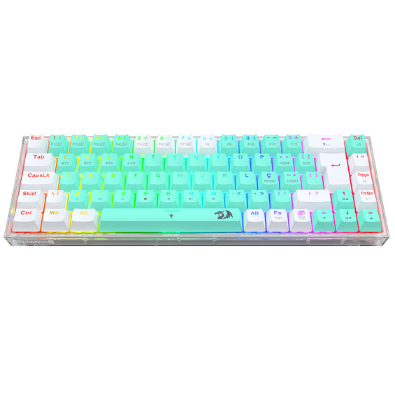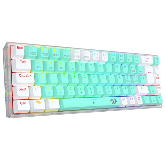 Nome: Teclado Mecânico Gamer Sem Fio Redragon Castor Pro RGB Branco com Menta 65% Switch Gentle Lime