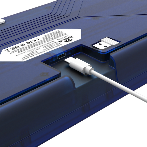 Keycaps: ABS Doubleshot com perfil MDA em azul degradê (keycaps não são translúcidas)