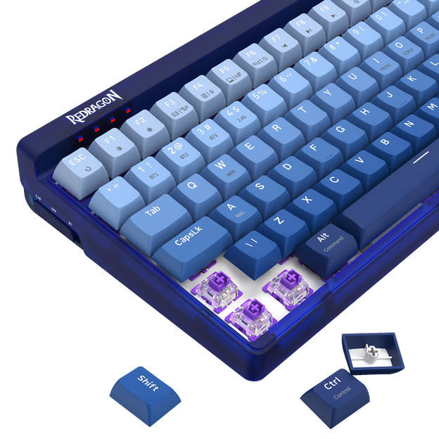 Nome: Teclado Sem Fio Redragon Garen Pro Azul RGB Mecânico 96% com Switch Purple