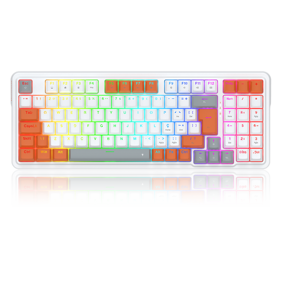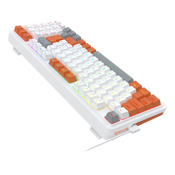Nome: Teclado Redragon Gloria Branco e Laranja RGB Mecânico compacto com Switch Red